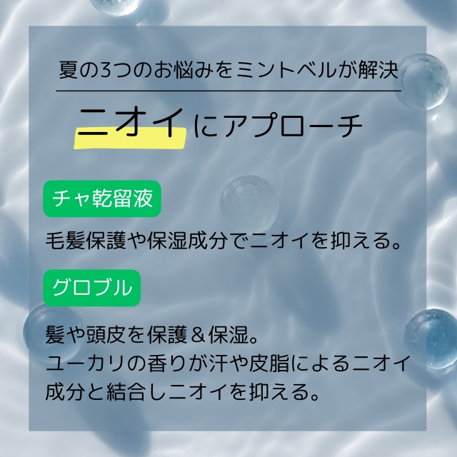 毛髪保護や保湿成分であるチャ乾留液やグロブルが、汗や皮脂による気になるニオイを抑えます 。