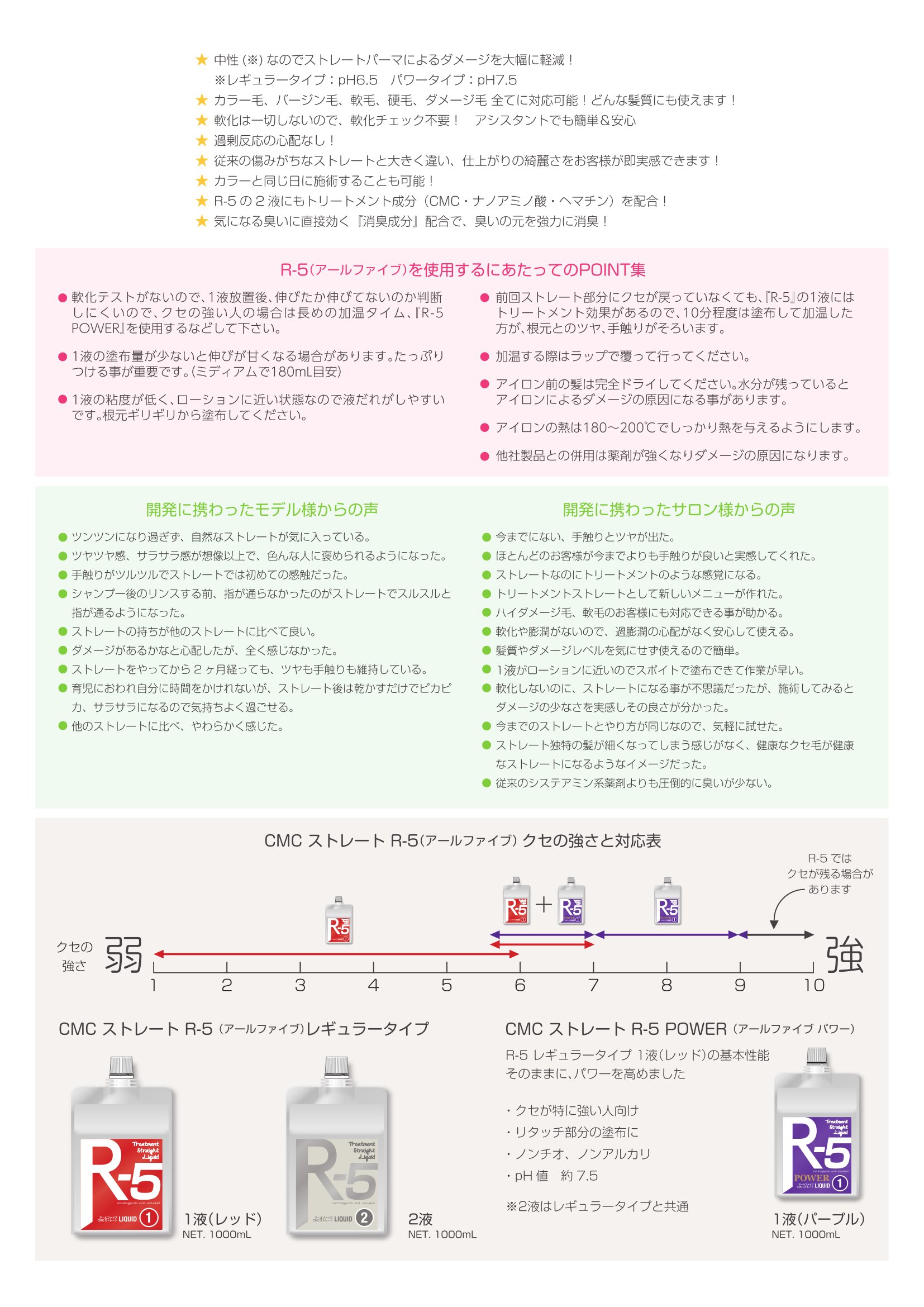 バージン毛からカラー毛、軟毛、ケミカルダメージによるパサつき・チリつきが気になる髪まで幅広く対応可能です。