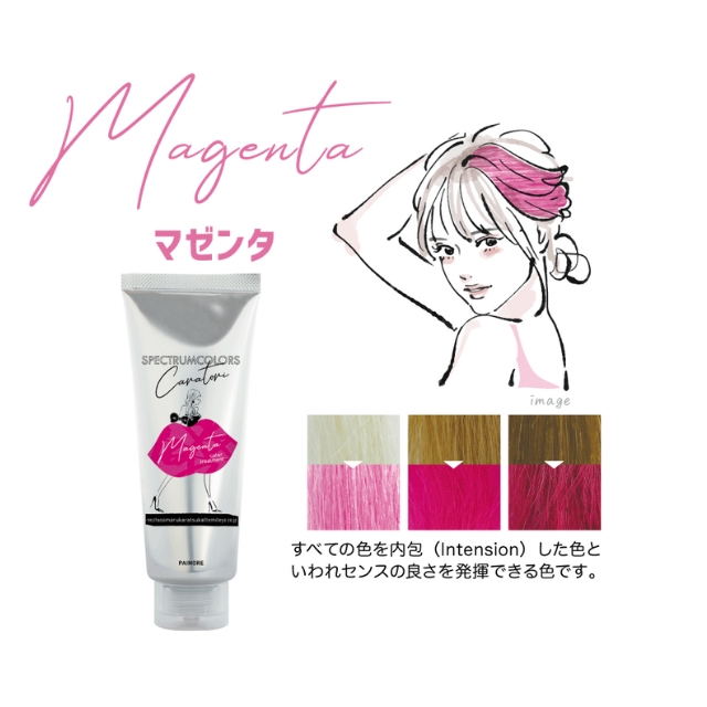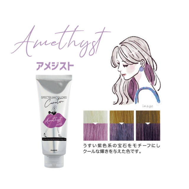 スペクトラムカラーズでは、澄明な彩色を厳選し、ヘアカラー発想のキレート独自テクノロジーで毛先まで均一な彩色で輝く美しいツヤ髪を実現。
